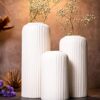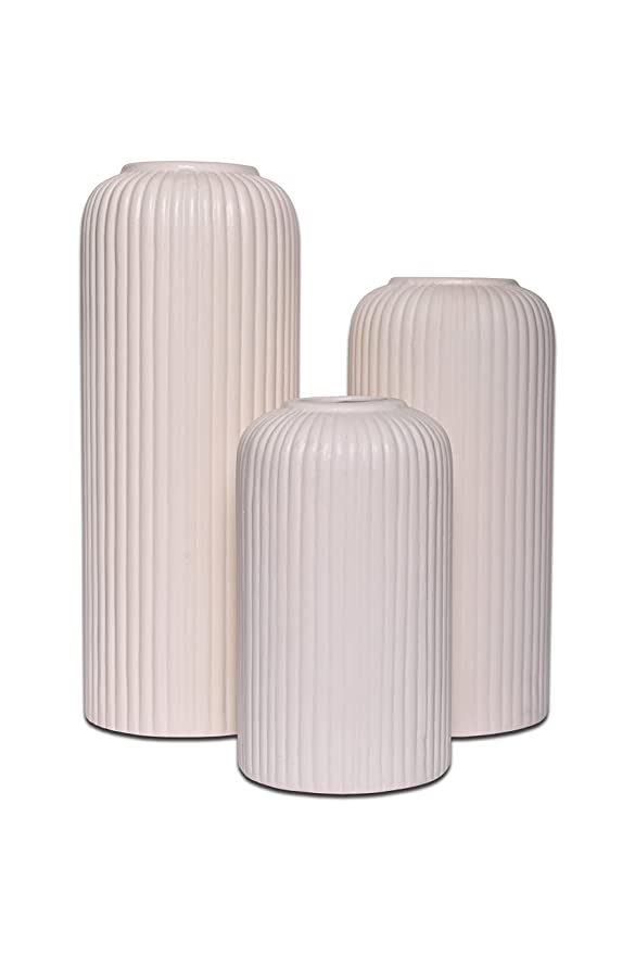 ✔Material: 100% ceramic vase matte finish Size: S-6.5 X 3.5Inch/ M-9.5 X 3.5 Inch / L-10.5 X 3.5 Inch- Shape: Ribbed Pipe Vase